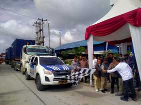 Belasan Polisi Inhil Kawal Truk Pengangkut Surat Suara